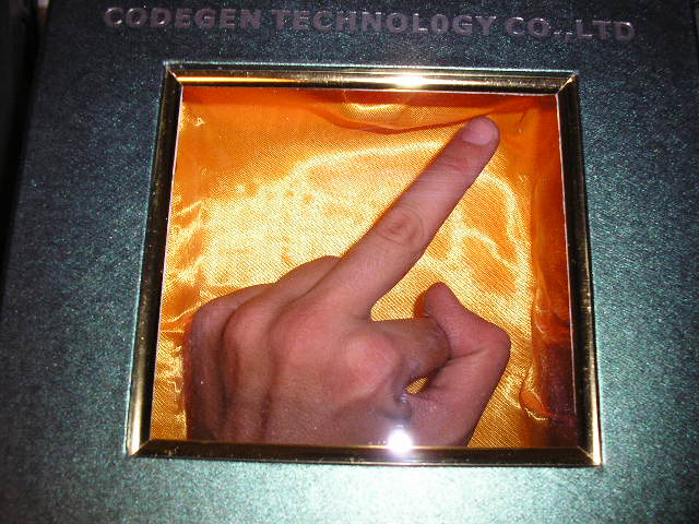 …a quanto pare la “sindrome della Apple” sta colpendo anche altre marche… purtroppo l’alimentatore Codegen versione WLF old-fashioned per chi e` tradizionalmente attratto dal sesso femminile non e` ancora uscito per cui ormai mi tengo quello… Si cercano ora impieghi per quella specie di bara neo-metrosexual a cui probabilmente si devono 20 dei 30 euro che costa il tutto! Io l’unica applicazione pratica che ho trovato e` questa foto artistica: